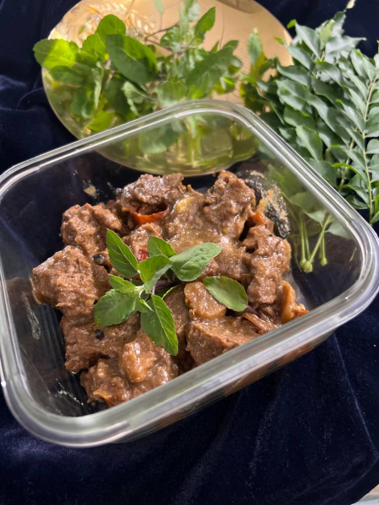 A tangy, spiced Pakistani curry of tender beef cubes marinated in yoghurt and garlic-ginger paste, finished with stuffed green chillies and a hearty tomato base.
