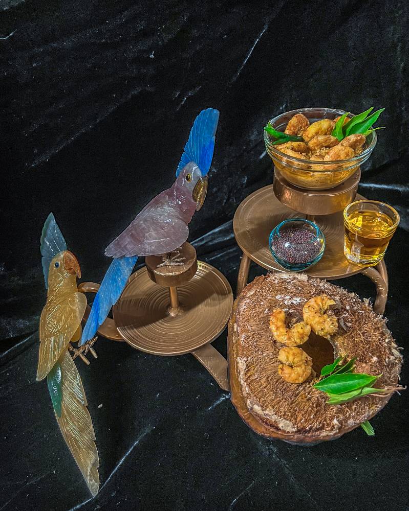 A festive Bangladeshi dish where prawns are cooked inside a green coconut, absorbing its sweet, nutty flavours alongside aromatic spices.