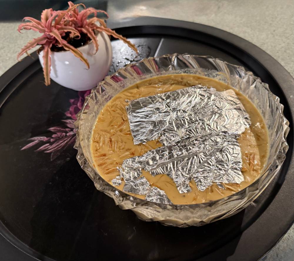 - Garnish with roasted almonds & silver foil